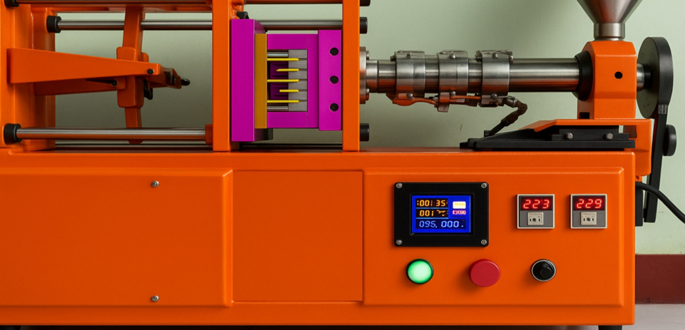 The final rendering allows visualization of the mold design in a real environment to evaluate aesthetics, suitability, and finishing for the injection machine before production.