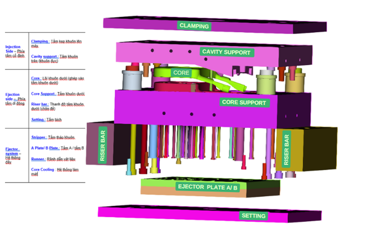 The CAD model of the mold is created based on the CAD design of the part derived from the point cloud data, with specific components assigned to each functional area.